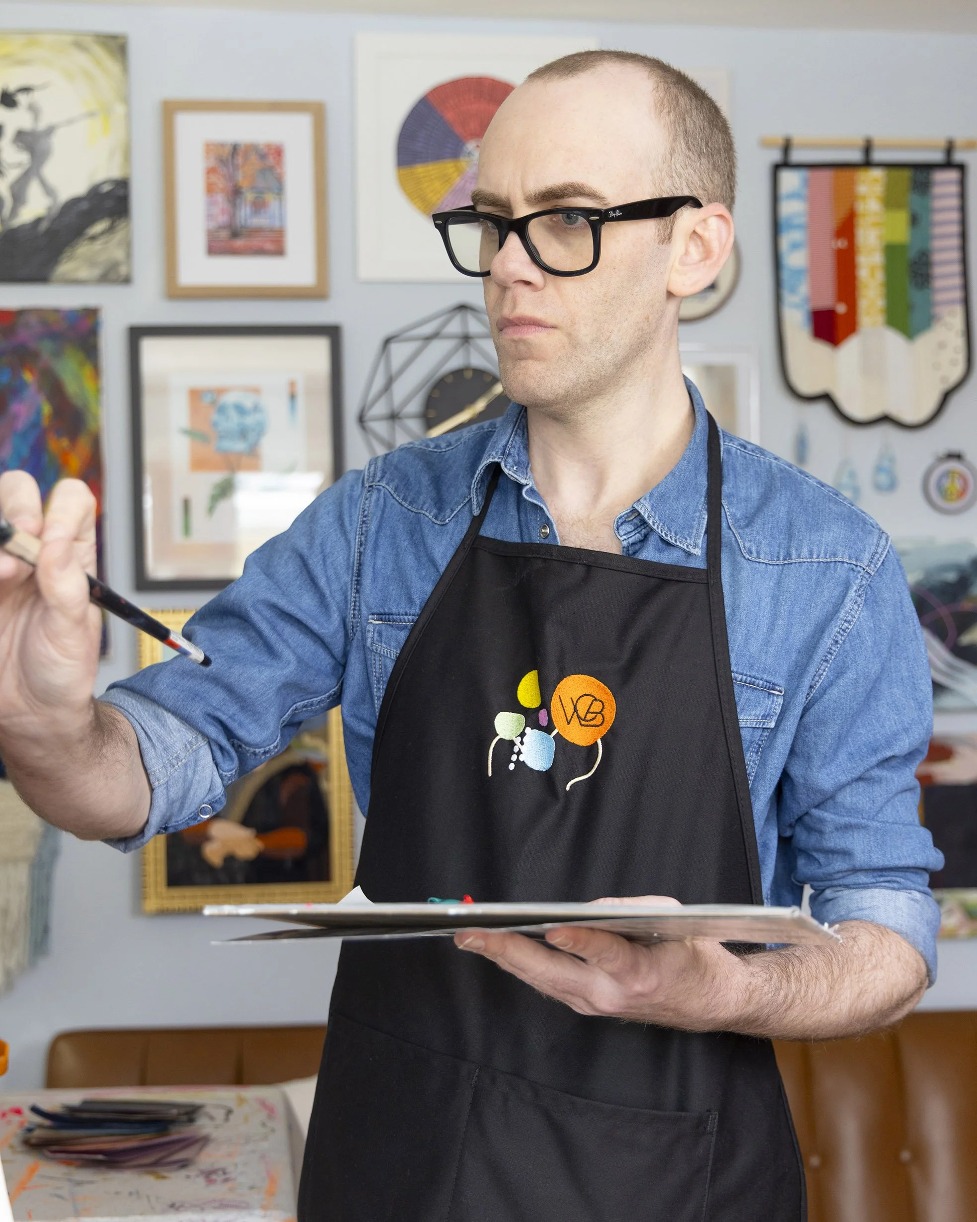 I explore themes of queerness and neurodivergence, favoring vibrant color, dynamic brushstrokes, and a layering of different textures and techniques. My work often features organic or biomorphic forms—I affectionately call them “blobs”—representing the kaleidoscope of different perspectives and ways of life we each bring.